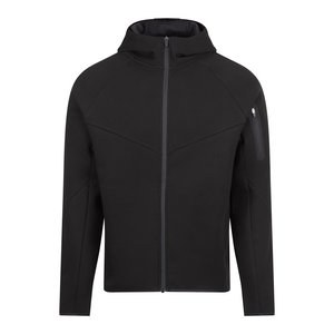 Made from soft interlock fabric with ergonomic panels, designed for ease of movement. Covered pocket on the sleeve. Jersey-lined hood.