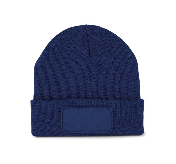 Knitted turn-up beanie in soft acrylic.