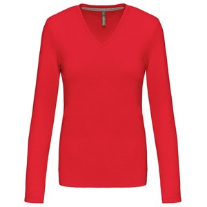 Kariban K382 - Red - LADIES' LONG SLEEVE V-NECK T-SHIRT