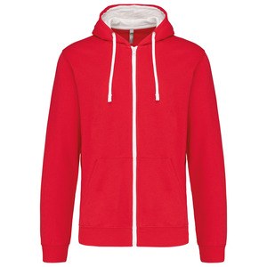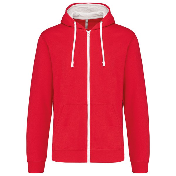 Kariban K466 - Red / White - Contrast hooded full zip sweatshirt