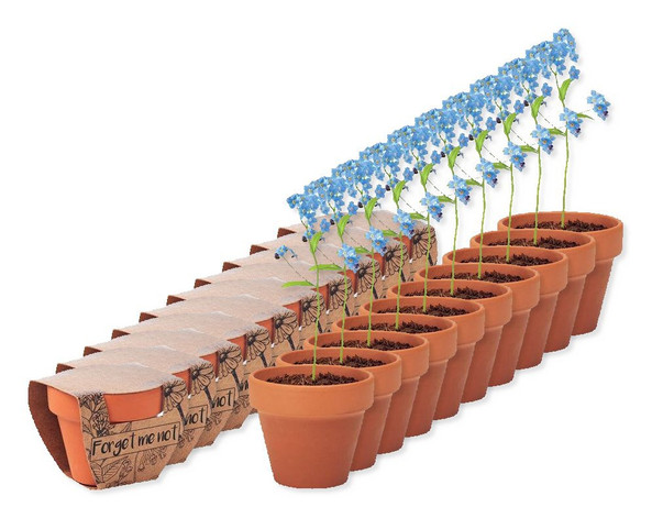 Pack of 10 GiftRetail MO6146 - FORGET ME NOT Charming Terracotta Pot with Forget Me Not Seeds