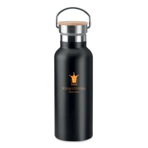 Pack of 10 GiftRetail MO9431 - Black - HELSINKI 500ml Bamboo Lid Insulated Flask