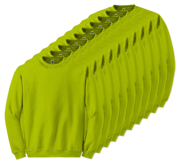 Pack of 10 Gildan 18000 - Safety Green - Crewneck Sweatshirt
